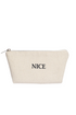 A minimalist and spacious cosmetic bag. It is made from natural material, with the fabric composition being 100% cotton. Taking care of this item is effortless. Inside, there is a lining that can be easily cleaned of cosmetic residue and other dirt. It closes with a zipper, ensuring the contents are securely protected during transportation.